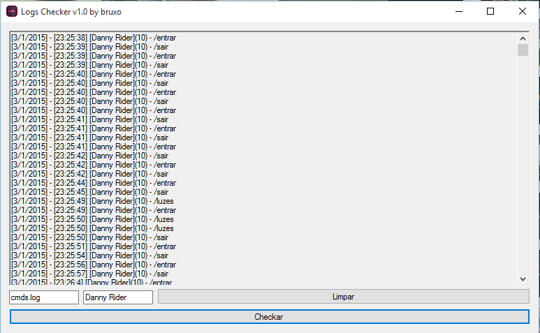 Este programa й para facilitar a localizaзгo de qualquer texto num log extenso. Eu criei este programa porque tinha logs com 1-4 milhхes de linhas e por exemplo para localizar todos os comandos que um jogador fez. O cуdigo em si й simples, mas creio que vai ajudar algumas pessoas. O programa й feito em C#. O ficheiro de texto deve estar na pasta em que o programa estб.